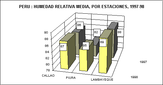 14. PERU : HUMEDAD RELATIVA POR ESTACIONES, 1985 - 98