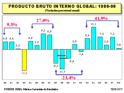 1.104 PRODUCTO BRUTO INTERNO, SEGUN SECTORES ECONOMICOS: 1986-98