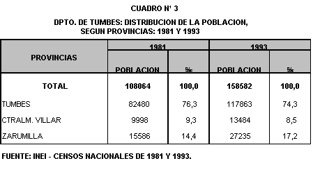 total departamental. La provincia de Tumbes, en 1981 albergaba