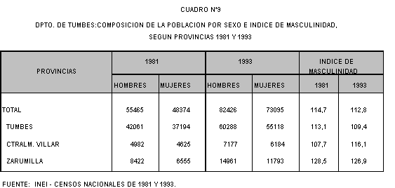 Villar y Tumbes tienen índices de masculinidad de 116 y