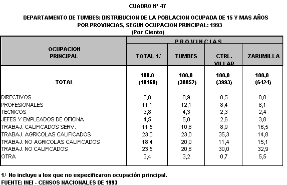 agrícolas 43,0% y 46,7% respectivamente, en Zarumilla el