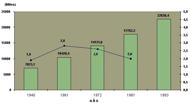 del triple (3.2 veces), que la de 1940, más