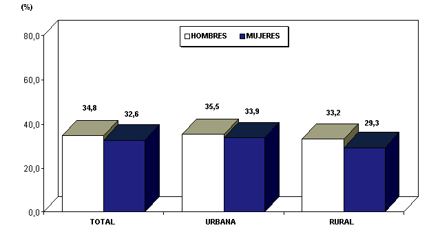 urbana (34,6%) que en la rural (31,3%). La asistencia segdn