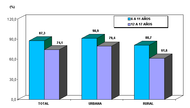En la poblaci\n de 6 a 11 aZos la tasa de asistencia escolar promedio nacional es de 87,3%, esto significa que 13 de cada 100 niZos no concurren a las escuelas.