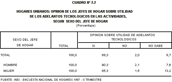 ADELANTOS TECNOLOGICOS, SEGUN SEXO DEL JEFE DE HOGAR
