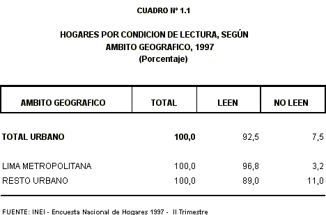 Nacional de Hogares (ENAHO 1997 - II Trimestre), a través