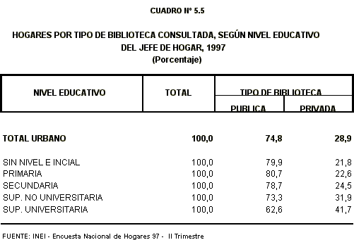 La mayor proporción (83.2%) de personas que consultaron bibliotecas públicas, provienen de hogares con Jefes jóvenes (menores de 20 años).