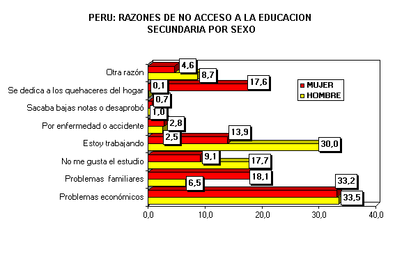 PERU: RAZONES DE NO ACCESO A LA EDUCACION SECUNDARIA, 1998