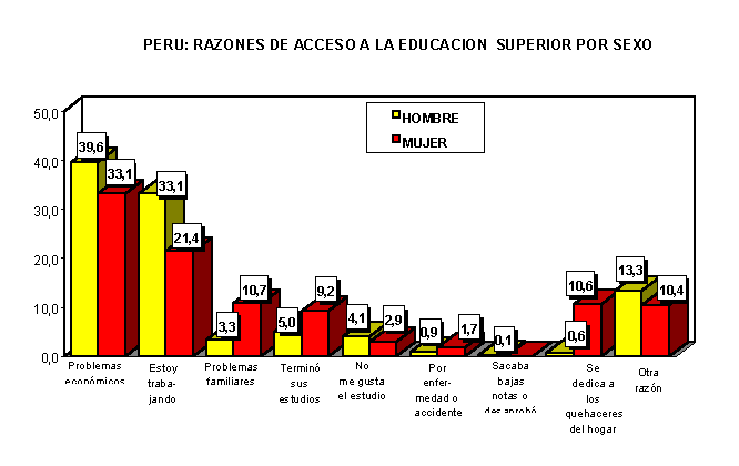 PERU: RAZONES DE NO ACCESO A LA EDUCACION SUPERIOR, 1998