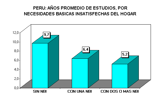 los hogares, se encuentra que aquellos que no presentan NBI tienen 9,7 años, entre los que