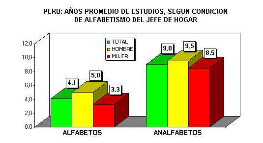 alfabetismo de los jefes, se aprecia que el promedio