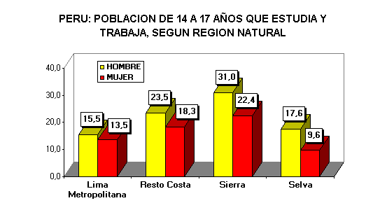y trabajan, 15,7% que en el área urbana, (13,9%).