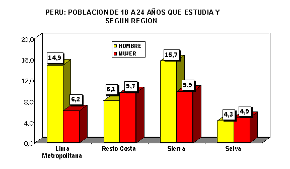 PERU: PROPORCION DE POBLACION DE 14 A 24 AÑOS QUE