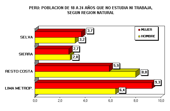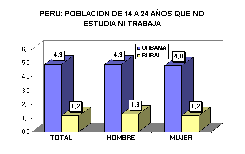 grupo de edad que no estudian ni trabajan, (7,1%) que en el área rural, (1,6%).