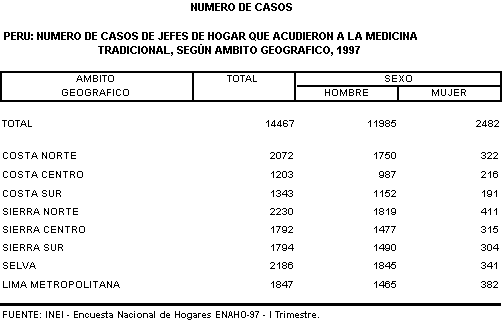 de jefes de hogar que acudieron a la medicina tradicional se encuentre