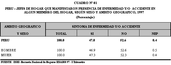 2.1 SINTOMA DE ENFERMEDAD Y/O ACCIDENTE EN HOGARES URBANOS DEL PAIS