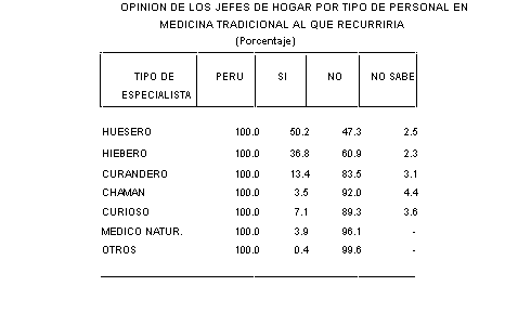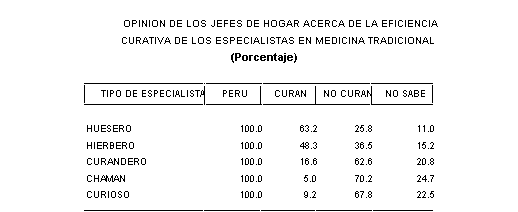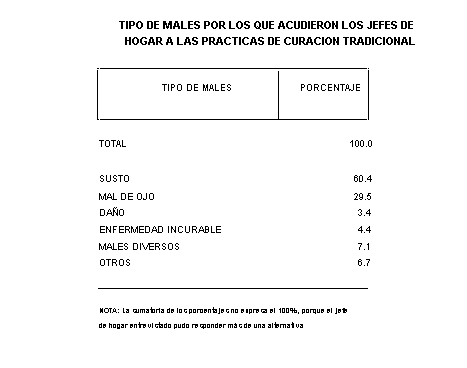 curativa de los hueseros y hierberos. El 63,2% de los jefes de