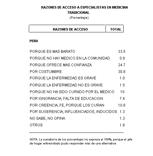 a los especialistas en medicina tradicional, el 60,4% declararon