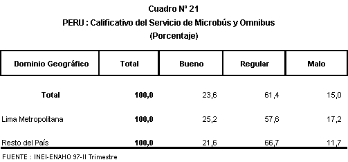 califica de malo. En Lima Metropolitana (63%), se tiene una menor