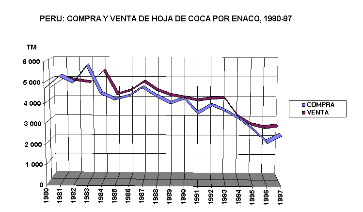 PERU: COMPRA Y VENTA DE HOJA DE COCA REALIZADA POR ENACO, 1980-97