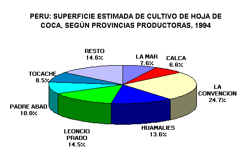 PERU: SUPERFICIE SEMBRADA DE HOJA DE COCA, SEGUN