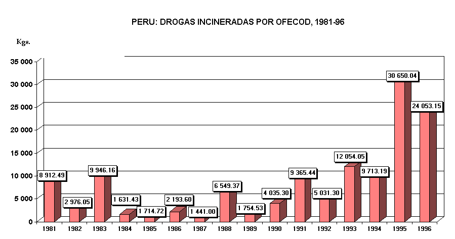 PERU: INCINERACION DE DROGAS POR TIPO DE SUSTANCIAS, 1981-97
