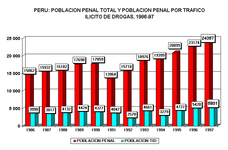 PERU: POBLACION PENAL TOTAL Y POBLACION PENAL POR