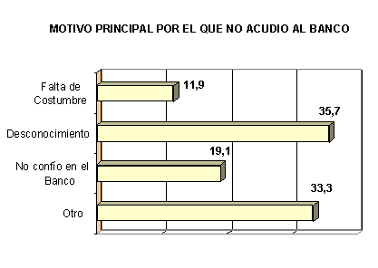 De las personas agraviadas por la usura, que no solicitaron el préstamo al banco, el 35,7% manifestaron que el principal motivo fue por desconocimiento de los trámites bancarios, el 19,1% no confiaron en el banco y el 11,9% no acudieron por falta de costumbre, entre otros. CUADRO Nº 10