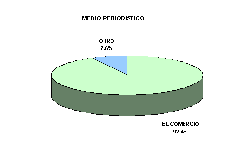 De los entrevistados que se enteraron sobre la posibilidad de obtener préstamos por avisos periodísticos, el 92,4% declararon que fue a través de "El comercio" y el 7,6% indicaron que fue por otro medio periodístico. ![]()