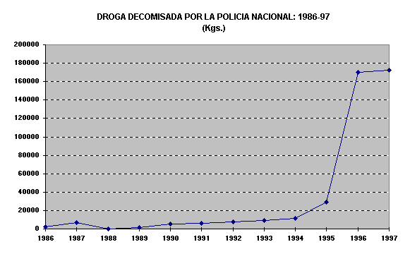 DROGA DECOMISADA POR LA POLICIA NACIONAL, SEGUN TIPO: 1986-97