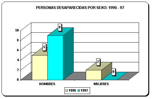 PERSONAS DESAPARECIDAS POR SEXO, SEGÚN AÑOS: 1996-97