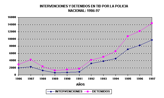 INTERVENCIONES Y DETENIDOS EN TRAFICO ILICITO DE DROGAS (TID)