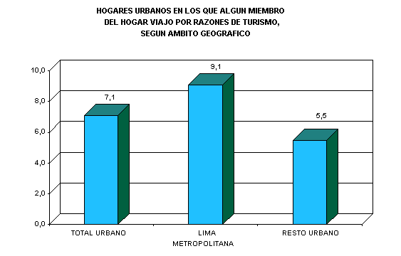 HOGARES URBANOS EN LOS QUE AL MENOS UN MIEMBRO DEL HOGAR REALIZO VIAJE DE TURISMO INTERNO, SEGUN AMBITO GEOGRAFICO