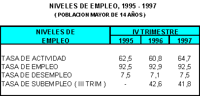 Desde julio de 1990, se ha aplicado en el Perú un programa de ajuste macroeconómico y de reformas estructurales que han buscado reducir drásticamente la inflación, creando las condiciones para un crecimiento sostenido y un retorno progresivo a la viabilidad externa. Como resultado del programa económico en marcha, el PBI per capita en el Perú ha recuperado la senda del crecimiento sostenido desde 1993, las tasas de crecimiento han fluctuado entre 2 y 13 por ciento durante el período, lo que unido a la disminución de la inflación ha incidido sobre los niveles de bienestar de la población, conforme viene reflejándose en los resultados de las diversas encuestas de niveles de vida . En el siguiente cuadro se observa que el PBI per capita durante 1997 creció en 7.2 por ciento con respecto a su similar del año anterior, en tanto que la inflación fue de 6.5 por ciento.