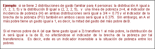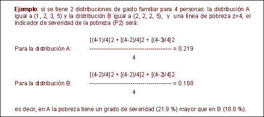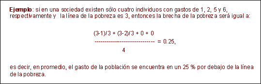 El indicador de la brecha de la pobreza, si bien muestra qué tan pobres son los pobres, tiene la desventaja de que no puede capturar bien las diferencias existentes entre la situación de los más pobres con respecto a la de los menos pobres.