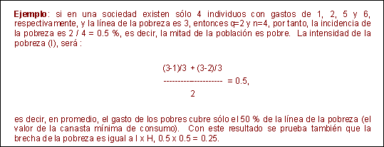 Si sólo se considerara el déficit de gasto de la población pobre se tendría lo que se conoce como el indicador de la intensidad de la pobreza.