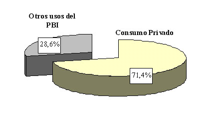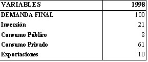 ![]() DESTINO FINAL DE LOS BIENES Y SERVICIOS Entre los bienes y servicios de la economía en el año 1998 que tienen como destino la Demanda Final, se puede distinguir que el Consumo Privado absorbe el 61%, el Consumo de Gobierno participa en 8%, a la Formación Bruta de Capital o Inversión le corresponde el 21% y un 10% se destina al exterior como Exportaciones.