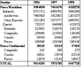 HIDROBIOLOGICOS SEGUN DESTINO : 1996 - 1998 (t) ![]()