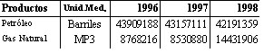 (Kg) ![]() Esta producción nos ubica como el octavo país productor del mundo, y es que en 1998 varias empresas auríferas han ampliado sus instalaciones con perspectivas de seguir creciendo el año siguiente, y además continuar en el campo de las exploraciones orientadas a descubrir y ubicar mayores reservas. Respecto al sector hidrocarburos, uno de los factores que limito el desarrollo de este sector ha sido la suspensión de la explotación del Gas de Camisea, aunque desde la privatización gradual de Petróperú se han incrementado los contratos petroleros en actividades de exploración y explotación. Actualmente existen 13 empresas petroleras que realizan explotación de petróleo crudo a nivel nacional, y 5 de ellas también se dedican a la explotación de gas natural, su producción fiscalizada la reportan a Perupetro, empresa encargada de supervisar los contratos petroleros en representación del Estado. Desde 1995 la producción de petróleo viene disminuyendo paulatinamente, por entonces su crecimiento fue de 4,5%, en 1996 cayó en 1,2%, en 1997 en -1.7% y finalmente disminuyó en 2,2% en 1998, las empresas que redujeron su participación fueron Petrotech (Zócalo Continental), y Occidental Peruana (Selva Norte) pasando a representar del 58,9% de la producción nacional en 1995 a 55,3% en 1998.
