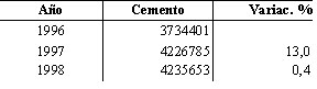 ![]() CONSTRUCCION A diferencia del año 1997, en que este sector tuvo un crecimiento sustantivo de 20,4%, principalmente por la ejecución de diversas obras de infraestructura de viviendas, edificios, centros comerciales, oficinas, hoteles, fábricas, obras de saneamiento entre otros. En el año 1998, este sector experimentó un leve crecimiento de 1,3 por ciento. Este resultado se sustenta básicamente en la construcción de obras públicas lo que ocasionó que los despachos locales de cemento crecieran solo en 0,4 por ciento.