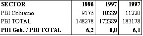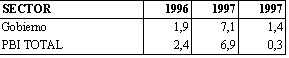 La actividad productiva de este sector, que consolida las actividades generadas por el Gobierno Central, Gobiernos Locales, Consejos Transitorios de Administración Regional, Instituciones Públicas Descentralizadas, Sociedades de Beneficencia Pública y Universidades Nacionales, experimenta en 1998 un incremento de 1,4%.