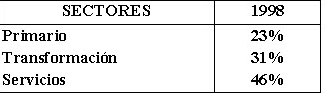 ![]() Se observa que en el PBI a precios de 1979 el sector primario representa el 23% e incrementó su producción en 2,1%; las actividades del sector secundario cuya importancia en el PBI es del 31% experimentaron una caída de -1,3%; y los Servicios en la economía cuyo peso constituye el 46% experimentaron un crecimiento del 0,5%.