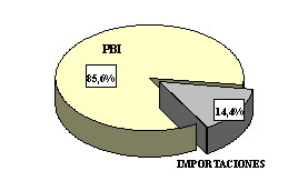 ![]() PBI EN LA OFERTA GLOBAL El PBI desde el punto de vista de la producción, constituye el valor de la producción final libre de duplicaciones, obtenido por los diferentes sectores productivos. Este indicador en el año 1998 representa el 85,6% de la Oferta Global