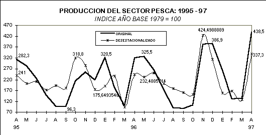 Entre enero-abril8 de 1997, la pesca desembarcada aumentó en 5,0%, influenciado por los mayores volúmenes de la pesca marítima (6,5%).