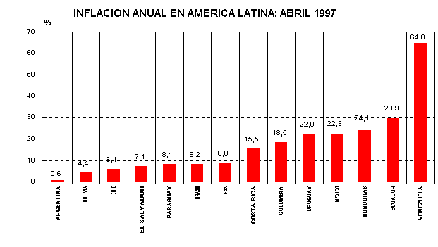 En abril, Venezuela volvió a presentar la tasa más alta en la región, después de mostrar una clara tendencia decreciente. Hay que recordar que en abril de 1996 tenía también esta incómoda posición, al registrar una tasa de 8,6%. Después de las últimas medidas adoptadas por el gobierno venezolano, puede advertirse que este país seguirá liderando la lista de los países con mayor inflación.