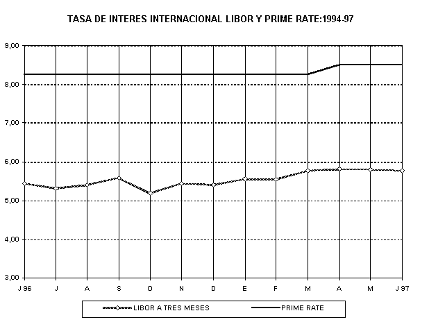 Debido a ello la tasa de interés Prime Rate se mantuvo en el nivel de 8,50%, en tanto que la Libor a tres meses registró una ligera disminución de 5,96% a 5,92%