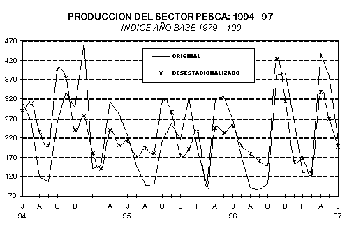 Las anomalías que viene presentando los niveles de temperatura del mar, han originado una baja de los niveles de captura de la especie anchoveta para la elaboración de harina y aceite, especialmente en la zona norte (Puertos de Paita, Parachique, Salaverry, Coishco, Chimbote, Samanco, Casma y Huarmey) y la zona centro (Supe, Vegueta, Huacho, Chancay, Callao, Pucusana, Tambo de Mora y Pisco). En la zona sur los puertos de Matarani, Mollendo e Ilo, aunque registraron incrementos en sus niveles de capturas, no compensaron la caída del sector. La pesca de "Otras especies",asimismo, disminuyó en -39,7%.