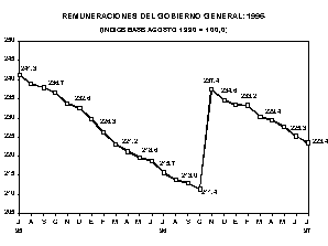 De otro lado, se observa que la capacidad adquisitiva de las remuneraciones, no obstante, sólo logró una mejora de 3,6% respecto al nivel real de los ingresos percibidos en julio de 1996.