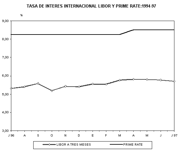 Debido a ello la tasa de interés Prime Rate se mantuvo en el nivel de 8,50%, en tanto que la Libor a tres meses registró una ligera disminución de 5,78% a 5,71%%