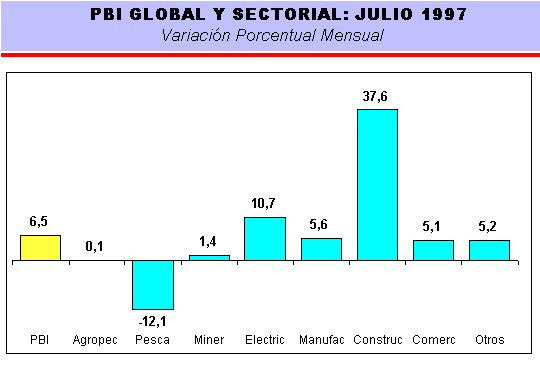 Los resultados obtenidos en los primeros siete meses de 1997, con un crecimiento acumulado de 7,2%, indican que 1997, sería el quinto año de crecimiento consecutivo que registraría la economía peruana.